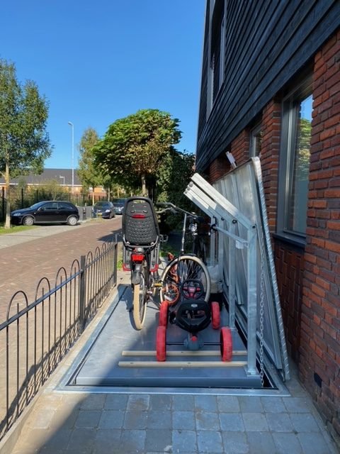 Dit systeem is gemaakt voor de berging van 3/4 fietsen of een motor, uiteraard kunnen hier ook andere zaken in worden opgeborgen, zoals een scootmobiel.